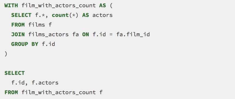 ![]() An example of a Common Table Expression (CTE) in an SQL query |